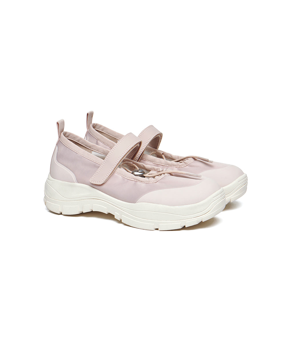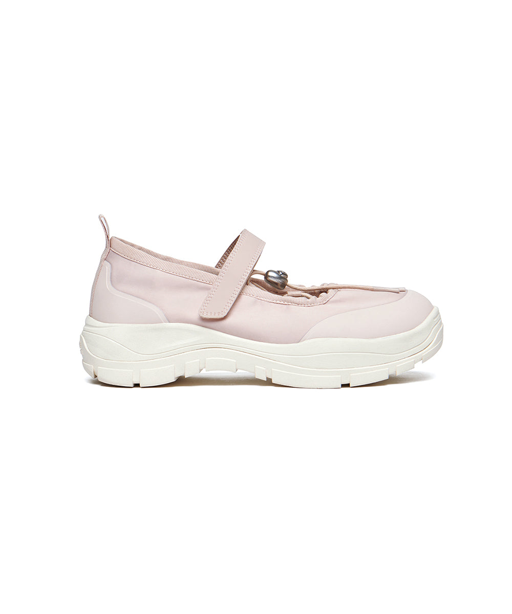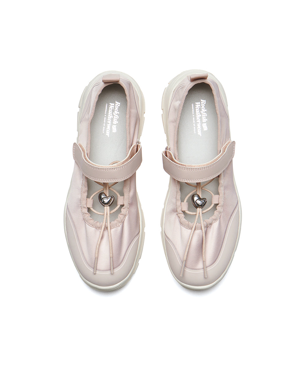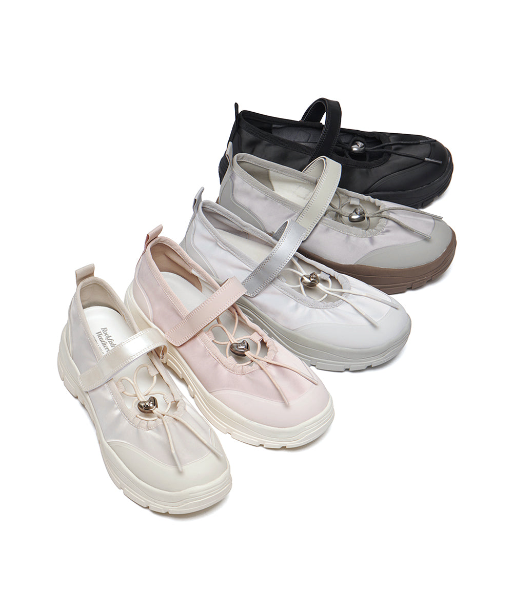String Mary Jane shoes featuring subtle shirring details and a heart-shaped metal stopper.
