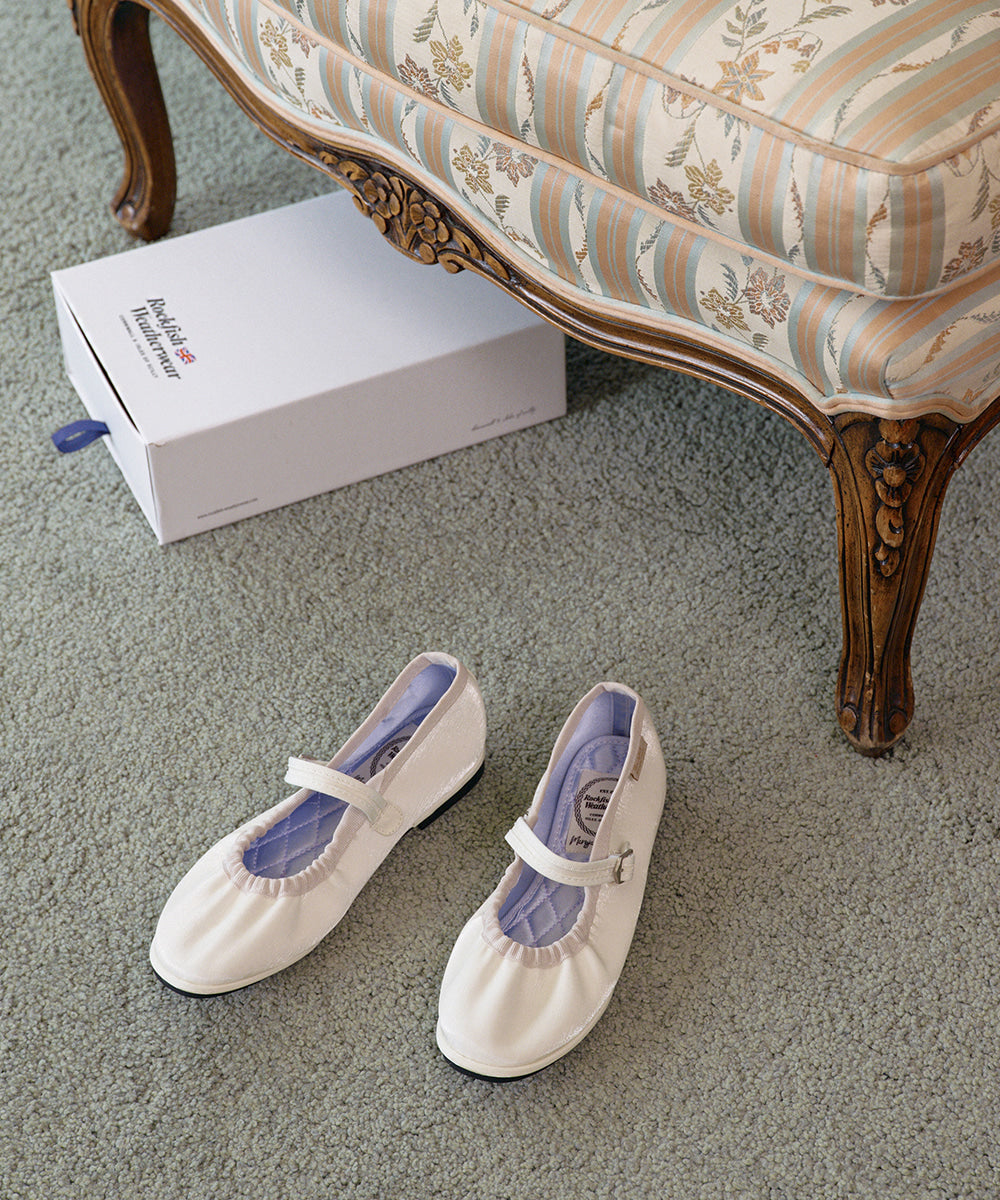 Mary Jane with natural scrunchie pleats and a sheer material.