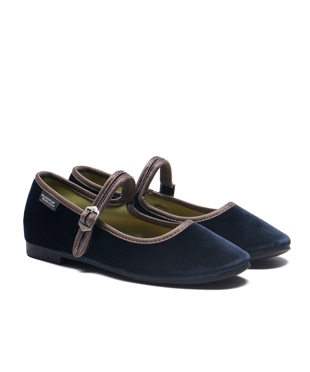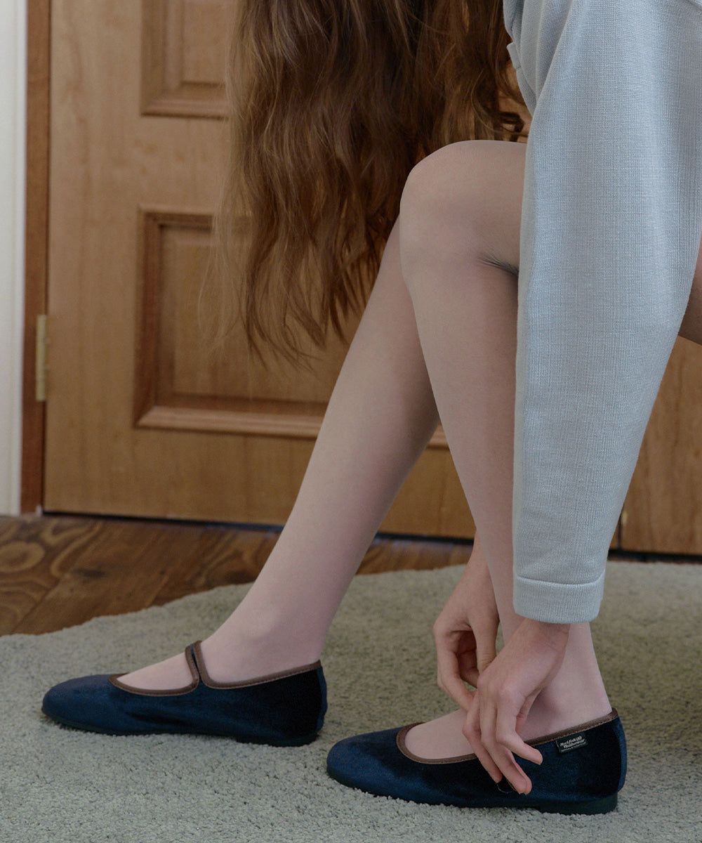 รองเท้าแมรี่เจนผ้ากำมะหยี่เงางามนุ่มละมุน ตัดกับซับในสีตัดกัน เพิ่มความหรูหราให้ลุคทุกวัน มาพร้อมสายรัดซ่อนและพื้นรองเท้าบุนุ่มแบบควิลท์ เพื่อความสบายและกระชับในการสวมใส่